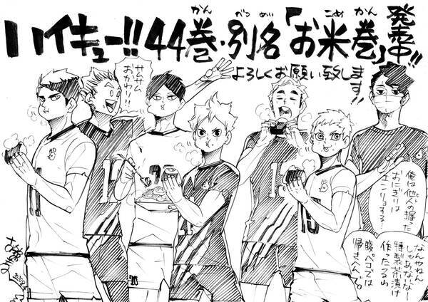 ハイキュー 最新44巻の宣伝イラストが到着 お米巻 に相応しくみんなでおにぎりを頬張る中 影山は 年8月4日 エキサイトニュース